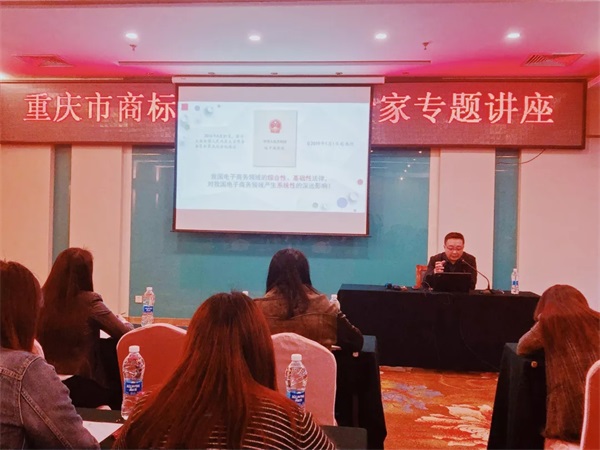 協(xié)會特邀重慶市市場監(jiān)督管理局電子商務(wù)監(jiān)督管理處副處長陳宏為與會企業(yè)代表帶來精彩的電子商務(wù)法專題講座。來自商標(biāo)協(xié)會會員單位和部分企業(yè)代表等近百人參加了本次專題講座,現(xiàn)場反響熱烈。