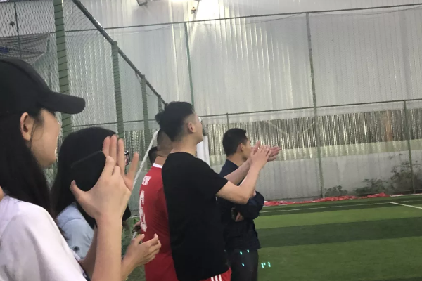 比賽一開場,我方隊員還未完全進(jìn)入狀態(tài),就被對方連進(jìn)兩球,0:2暫時落后。雖然開局失利,但我方士氣并未受到影響,合理調(diào)整戰(zhàn)術(shù),積極發(fā)動攻勢,“好球,進(jìn)了”!伴隨著陣陣歡呼和清脆的哨響,我方隊員李力抓住機(jī)會頭球破門,為我方扳回一分,雙方打成1:2。隨后,我方隊員Tony飛起一腳遠(yuǎn)程射門,進(jìn)球,雙方戰(zhàn)成2:2平。在第一小節(jié)的最后關(guān)頭我方外援也踢進(jìn)一球,3:2,對方也不甘示弱,很快追成3:3。